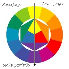 Varme og kalde rødfarger. Men det snakkes også om kalde og varme rødfarger. De varme ligger mot gult og de kjølige mot blått som vist i fargehjulet, forklarer Angelo. Kine Angelo tar fram fargehjulet, og trekker en tykk strek mellom varme og kalde farger.
